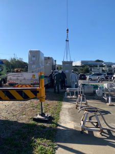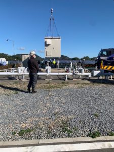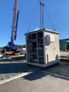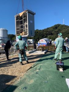 10月中旬 某所にて太陽光設備受電盤の据付工事に行ってまいりました。 重量物の搬入の為、安全作業で取り組みました。