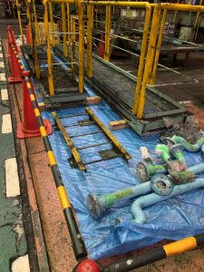 10月に某所にて精密機械の仕上げ工事に行ってまいりました。 一部、作業風景です。 重量物の撤去もあり安全対策もしっかり練り行いました。